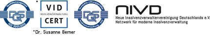 Frau Rechtsanwältin Dr. Susanne Berner ist Gründerin und Vorstandsvorsitzende der NIVD – Neue Insolvenzverwaltervereinigung Deutschlands e.V. In dieser Eigenschaft engagiert sie sich besonders bei der Fortentwicklung des Insolvenzrechts und der Interessenvertretung der Verwalterschaft.